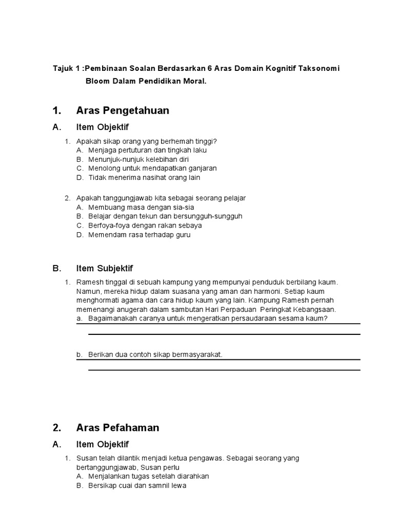 10 Contoh Soalan Mengikut Aras Taksonomi Bloom. Saya dan jiranSK. Sistem pemarkahan juga memainkan penting dalam.